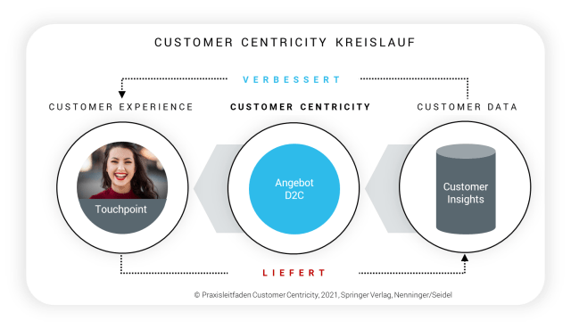 Eine gute Customer Experience treibt den Customer Centricity Kreislauf an (s. Abb. unten). Wie gut die funktionalen Voraussetzungen auf dem digitalen Markenauftritt dafür sind, zeigt der von uns entwickelte CX-Score.